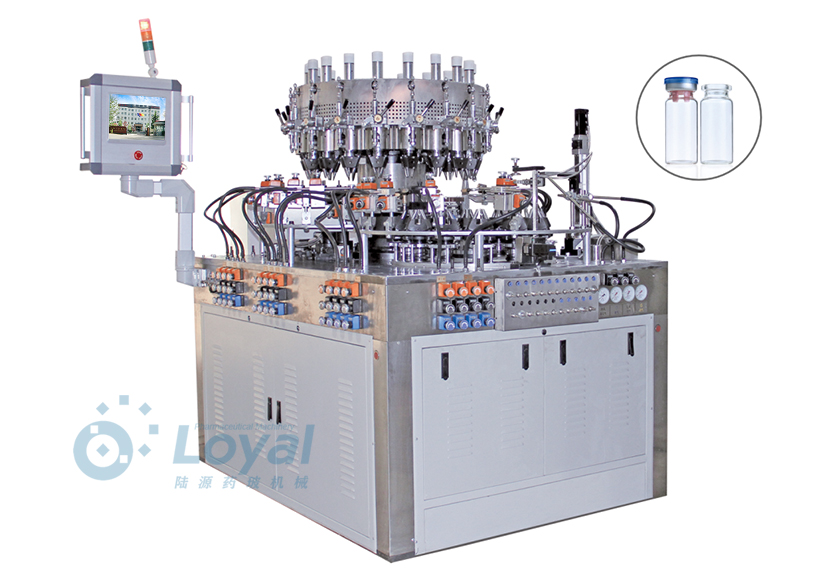 西林瓶生產(chǎn)線包括:自動上管、自動成型、經(jīng)機(jī)械手轉(zhuǎn)換至前端檢測線(也叫生產(chǎn)管控)、檢測線檢測的項目:1、瓶口內(nèi)外徑 2、瓶身長短 3、瓶身外徑 4、瓶口邊厚 5、瓶底內(nèi)凹尺寸檢測;經(jīng)檢測后的合格品再用機(jī)械手夾盤轉(zhuǎn)換至退火爐網(wǎng)帶上,經(jīng)高溫減除應(yīng)力后再降溫,通過氣動吸盤將回火后的小瓶轉(zhuǎn)換至后端檢測線,后端檢測(也是重檢也叫終檢),經(jīng)后端拍照檢測項目